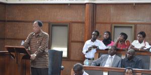 Rais wa shirikisho la soka Tanzania TFF Jamal Malinzi akitangaza kusimamisha uchaguzi wa klabu ya Simba.