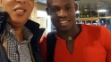 Farid Mussa akiwa na wakala wake baada ya kutua hapo Hispania jana usiku