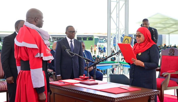 Mhe. Dkt. Samia Suluhu Hassan akiapishwa na Jaji Mkuu wa Tanzania