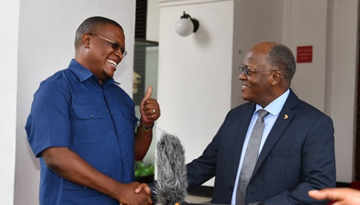Rais Magufuli akiwa na Mbunge wa Mtama Nape Nnauye.
