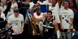 Wachezaji wa Milwaukee Bucks wakishangilia ubingwa