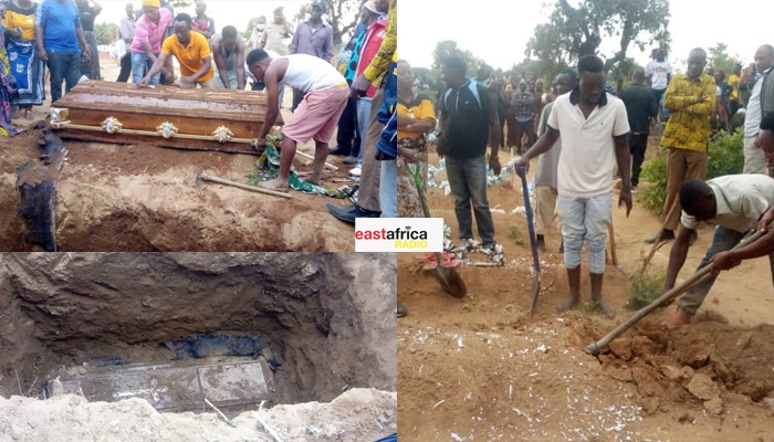 Mwili wa Marehemu Tulizo Konga, ukifukuliwa huko mkoani Mbeya.