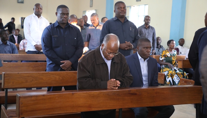 Rais wa Jamhuri ya Muungano wa Tanzania Mheshimiwa Dkt. John Pombe Magufuli akiwa amejumuika na Waumini wengine wa Kanisa Katoliki Parokia ya Mtakatifu Bikira Maria Imaculata Chamwino katika Misa ya Jumapili ya Sikukuu ya Utatu Mtakatifu leo tarehe 7 Juni 2020.