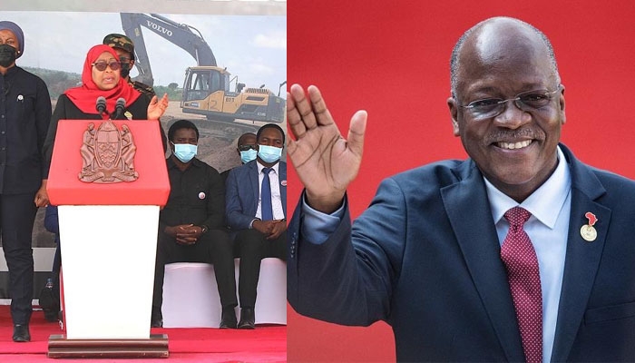 Kushoto ni Rais Samia Suluhu Hassan, na kulia ni Hayati Dkt. John Magufuli