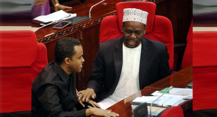 Mbunge wa Kigoma Mjini, Zitto Kabwe aliyevaa Kofia (Kibaraghashia) akiwa na Mbunge wa Nzega Mjini, Hussein Bashe.
