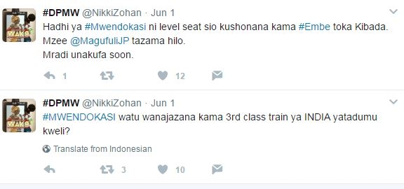 "Hadhi ya mwendokasi ni 'level seat' siyo kushonana kama embe toka kibada Mzee Magufuli tazama hilo, mradi unakufa 'soon'. Mwendokasi watu wanajazana kama '3rd class train' ya India yatadumu kweli ?" aliandika Nikki Mbishi