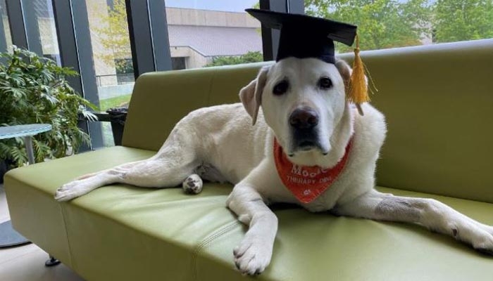 Mbwa huyo mwenye umri wa miaka 8 alijiunga na chuo hicho mwaka 2014 kama balozi wa uelewa wa masuala ya akili, amekuwa akitumika kwa tiba ya mazoezi katika kitivo cha saikolojia, ambapo amezawadiwa shahada ya udaktari wa wanyama pamoja na wanafunzi wengine.