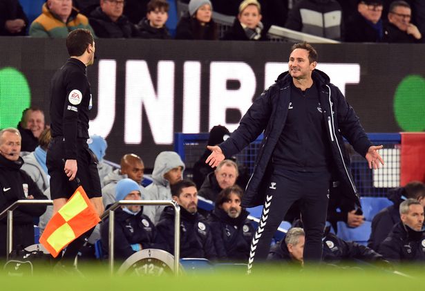 (Kocha wa Everton Frank Lampard akilalamika kwa muamuzi)