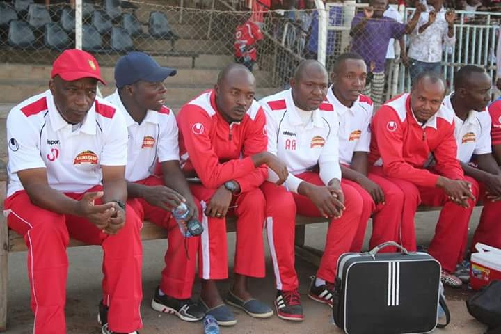 Benchi la ufundi la Simba likiongozwa na kocha mkuu Joseph Omog (wa kwanza kushoto).
