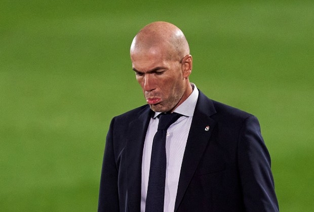 Kocha wa Real Madrid, Zinedine Zidane akitafakari baada ya hali kuwa tete katika moja ya mchezo.