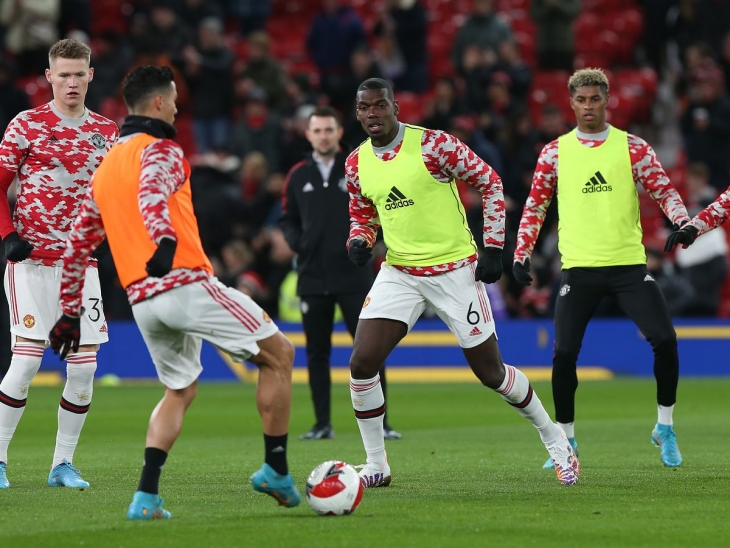 (Wachezaji wa Manchester united wakipasha misuli kabla ya mchezo.)