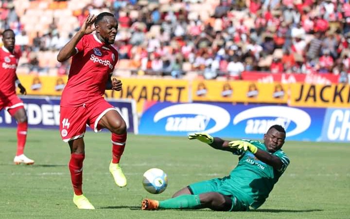 Mshambuliaji wa Simba, Medie Kagere akijaribu kufunga bao dhidi ya kipa wa Azam, Mathias Kigonya kwenye mchezo wa VPL duru la kwanza uliomalizika kwa sare ya 2-2.