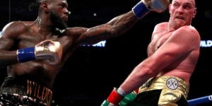 Tyson Fury (kulia) dhidi ya Deontay Wilder (kushoto) walipokuwa wakionyeshana ubabe kwenye pambano lililopita.