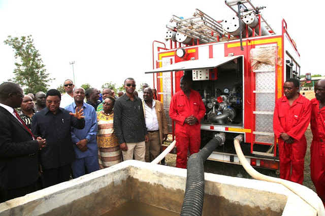 Waziri Mkuu, Kassim Majaliwa akikagua kiwanda cha kuunganisha magari ya zimamoto na matrekta cha Equator SUMMA kilichopo Mlandizi mkoani Pwani.