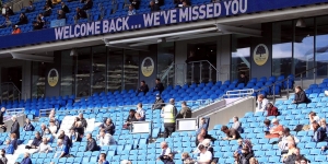 Mashabiki wa mpira wa miguu Uingereza wakionyesha ishara ya kufurahishwa na urejeo wao kushuhudia michezo viwanjani.