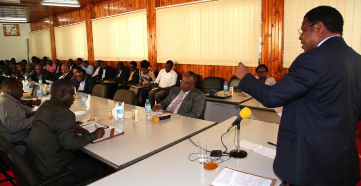 Waziri Mkuu Kassim Majaliwa akizungumza na watendaji wakuu wa Wizara ya Maliasili na Utalii