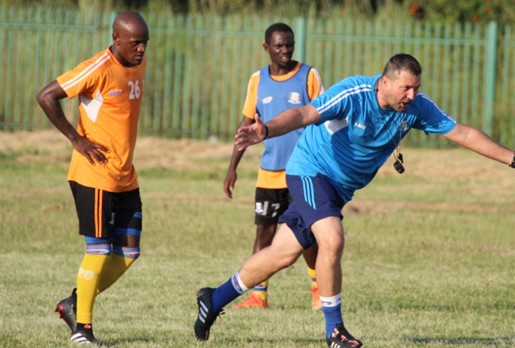 Kocha wa Azam akiongoza vijana wake katika mazoezi nchini Afrika Kusini