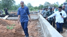 Waziri Mkuu, Kassim Majaliwa akikagua ujenzi wa madarsa ya Shule ya Msingi katika kijiji cha Msomera wilayani Handeni Mkoa wa Tanga kwa ajili ya wananchi walioridhia kuhama katika Hifadhi ya Ngorongoro kwenda kujishi katika kijiji hicho, Aprili 24, 2022. Kulia kwake ni Kaimu Mkuu wa Mkoa wa Tanga na na Mkuu wa Mkoa wa Arusha, John Mongella.