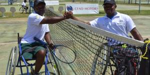 Wachezaji wa mchezo wa tenisi kwa walemavu wakipeana mkono katika moja ya michezo yao.