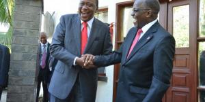Rais wa Jamhuri ya Muungano wa Tanzania Dkt. John Pombe Magufuli akizungumza jambo na Rais wa Kenya Uhuru Kenyatta.