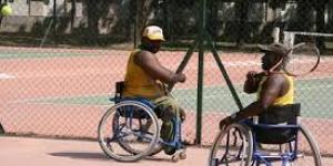 Baadhi ya wachezaji wa tenisi kwa walemavu [wheel chair tennis] wakichuana jijini Dar es Salaam