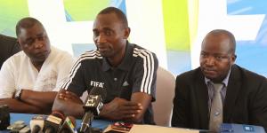 Mwamuzi Israel Mujuni Nkongo wa Dar es Salaam [katikati] akiwa na mabosi wa TFF.