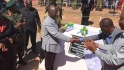 Mhe. Rais Magufuli akiweka jiwe la msingi leo katika ufunguzi wa barabara ya Kigoma-Biharamulo-Lusahunga yenye urefu wa Kilometa 154.